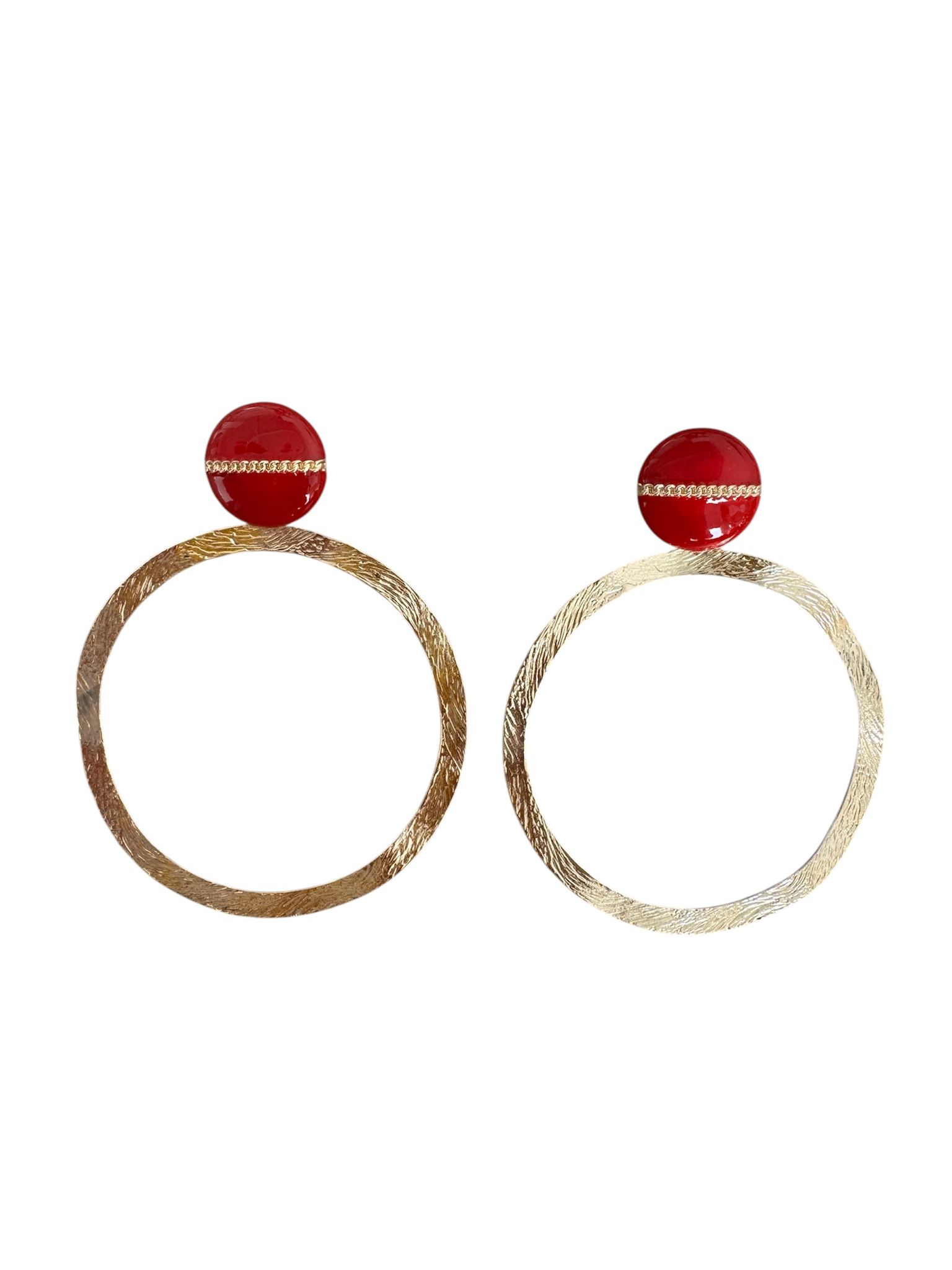 Pendientes aretes dorados con base roja.